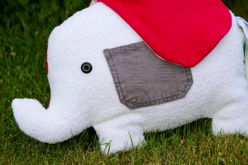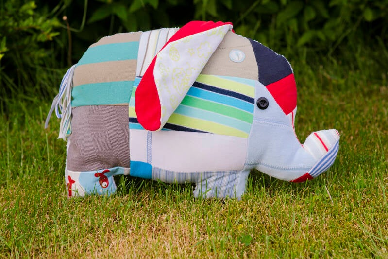 Natuurlijk heeft onze zoon meegedacht bij het hele proces en hij gaf aan dat het een olifant moest gaan worden. De inspiratie kwam ook van Elmer de kleurtjes olifant. Die boekjes las ik in die tijd vaak voor aan de jongste. En zo is dus deze schattige lapjes olifant tot stand gekomen!